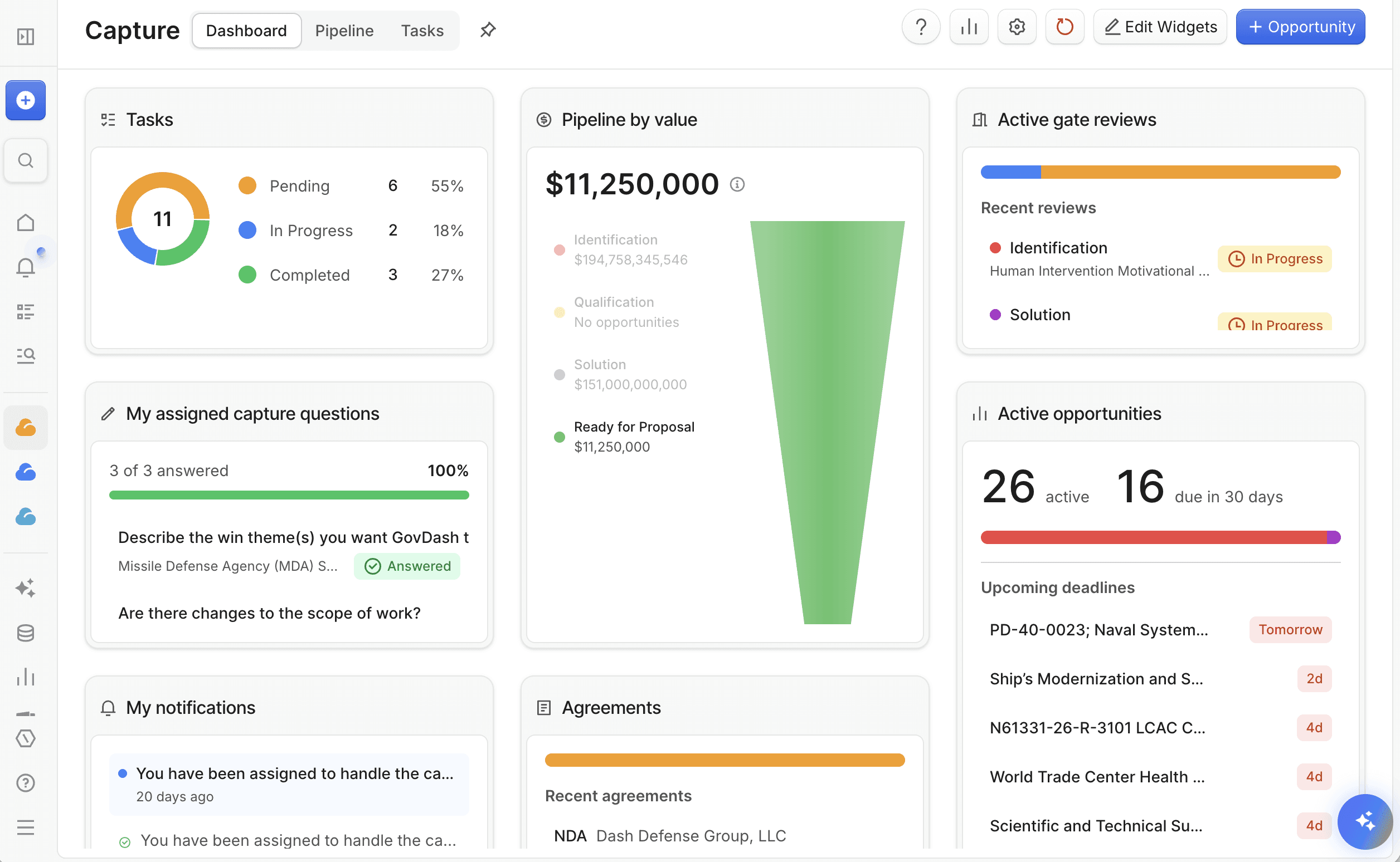 Replace multiple broken tools with GovDash, one powerful AI platform for capture, proposals, contract management and more.