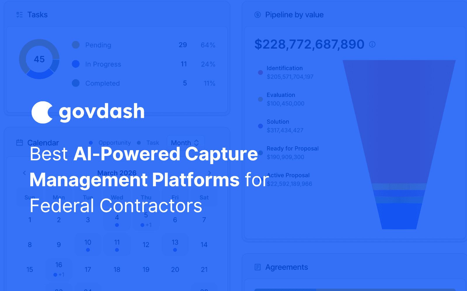 GovDash provides federal capture tools that connect opportunity discovery through contract management in one AI-driven system built for government contractors. But the best solution for your team depends on whether you need full lifecycle integration or just faster proposal drafting. Focus on where you're losing time today, then pick the tool that solves that specific problem first.