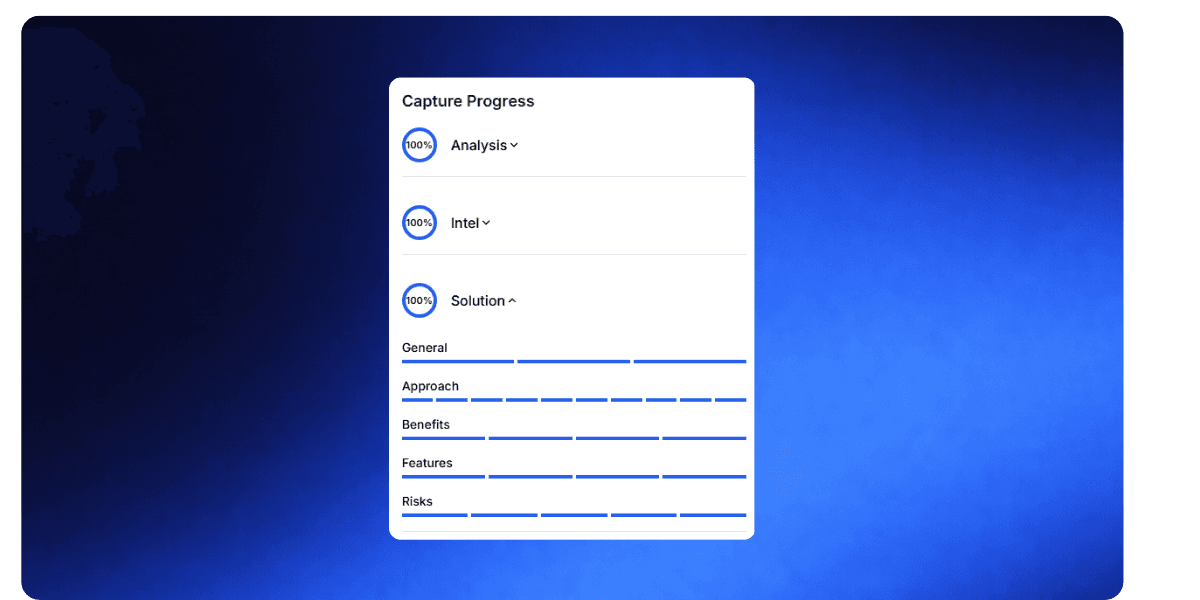 Customer insights, competitive positioning, solution direction, capability assessments, teaming considerations, and gate review outcomes all carry forward. Early responses tend to be lighter and more exploratory. Later responses require more detail, substantiation, and precision. The same opportunity record supports that shift naturally.