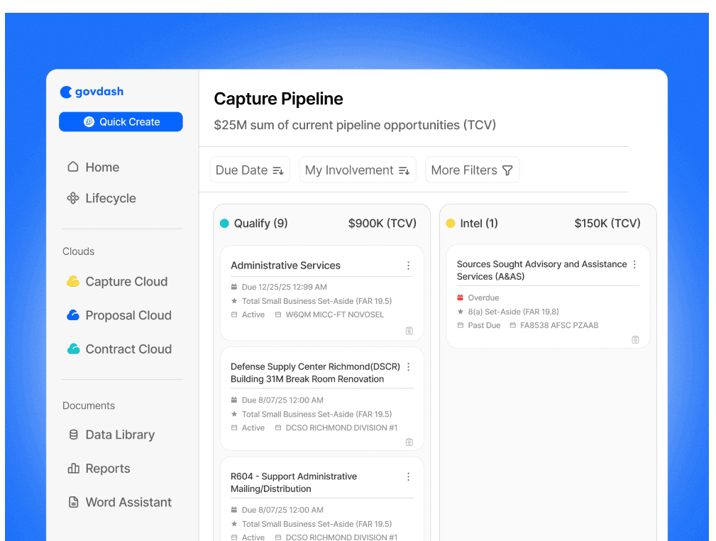 Capture Cloud evolved into a CRM for government contractors in 2025, giving teams powerful new ways to manage their entire business development pipeline.