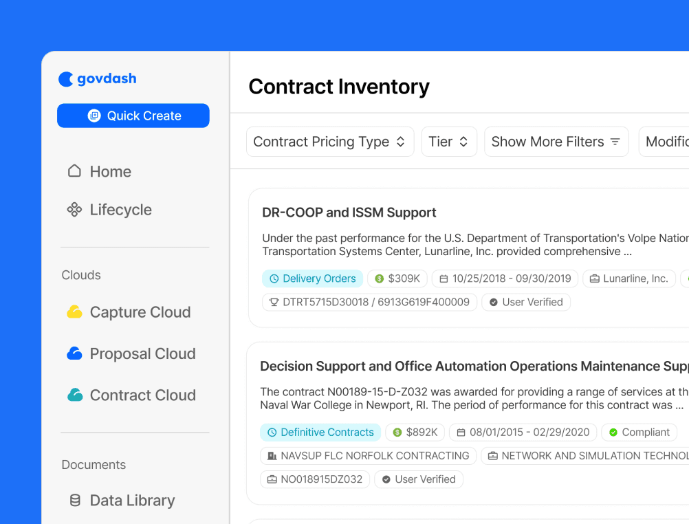 Contract Cloud matured significantly in 2025, evolving from a repository into a comprehensive post-award management platform. The introduction of contract modification tracking provides full visibility into the lifecycle of awarded contracts.